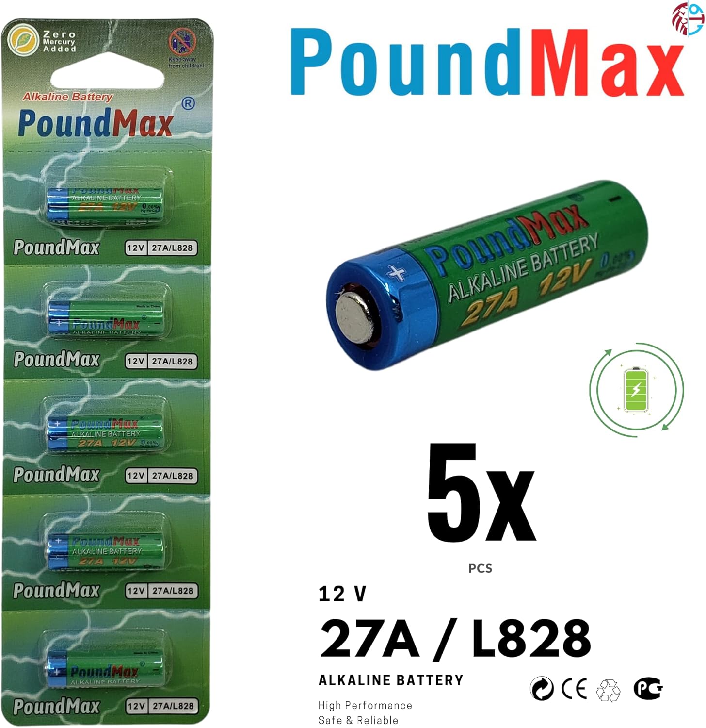 PoundMax 27A / L828 Batteries 12v Alkaline Battery Combo Pack - 5 Count