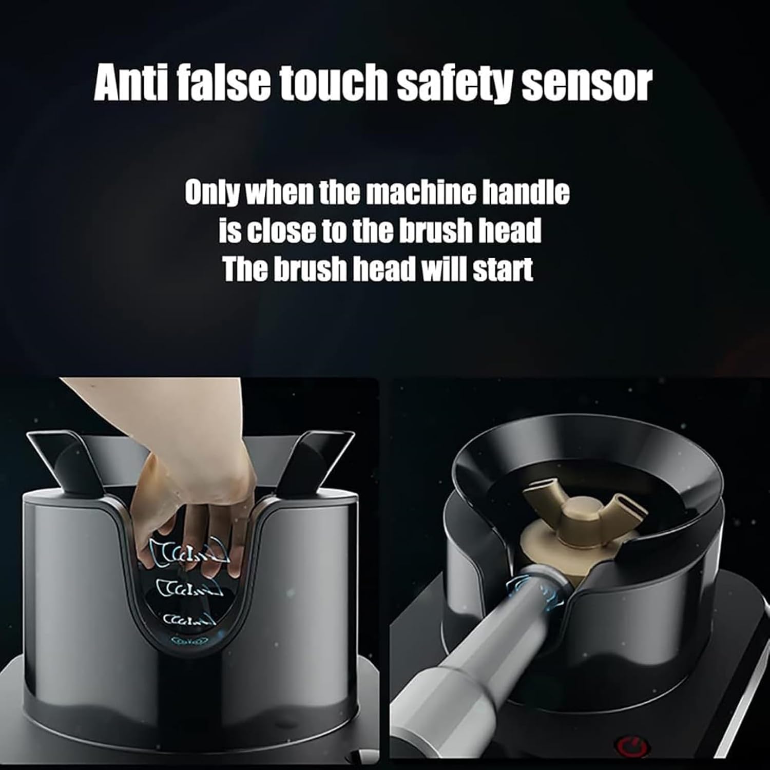 Electronic Portafilter Cleaner, Automatic Coffee Portafilter Cleaning Brush, with 3 Different Shape Brush, Safety Sensing Device