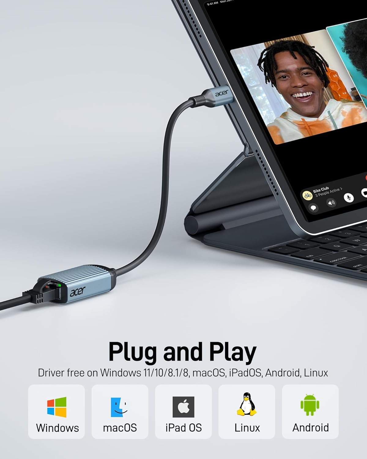 Acer USB C to Ethernet Adapter, Plug and Play RJ45 to Type C Network Dongle(Thunderbolt 3/4 Compatible), 1Gbps Aluminum USB-C LA