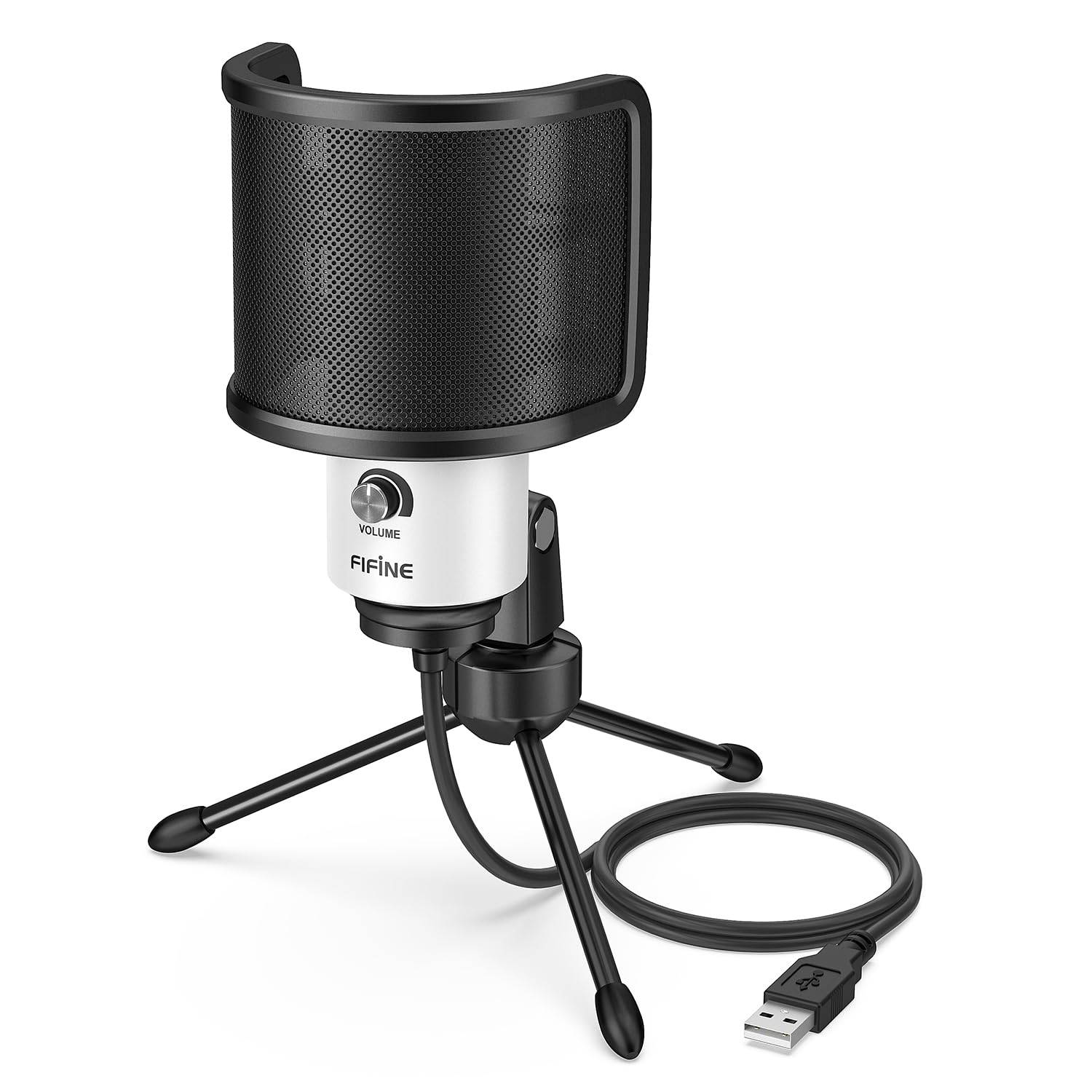 FIFINE USB Podcast Microphone with Pop Filter Bundle, Studio Recording Microphone with Volume Knob for Voice-Over, Mic Pop Scree