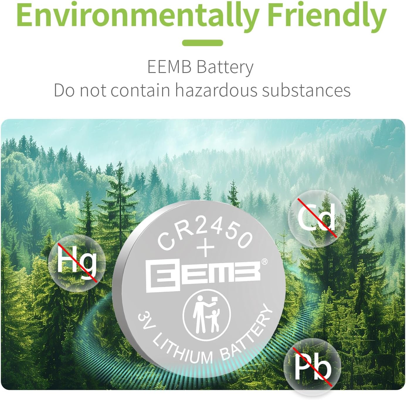 EEMB 5 Pack CR2450 Battery 3V Lithium Battery 2450 Button Coin Cell Batteries DL2450、ECR2450、BR2450 for Watch/Candles/Alarm Syst