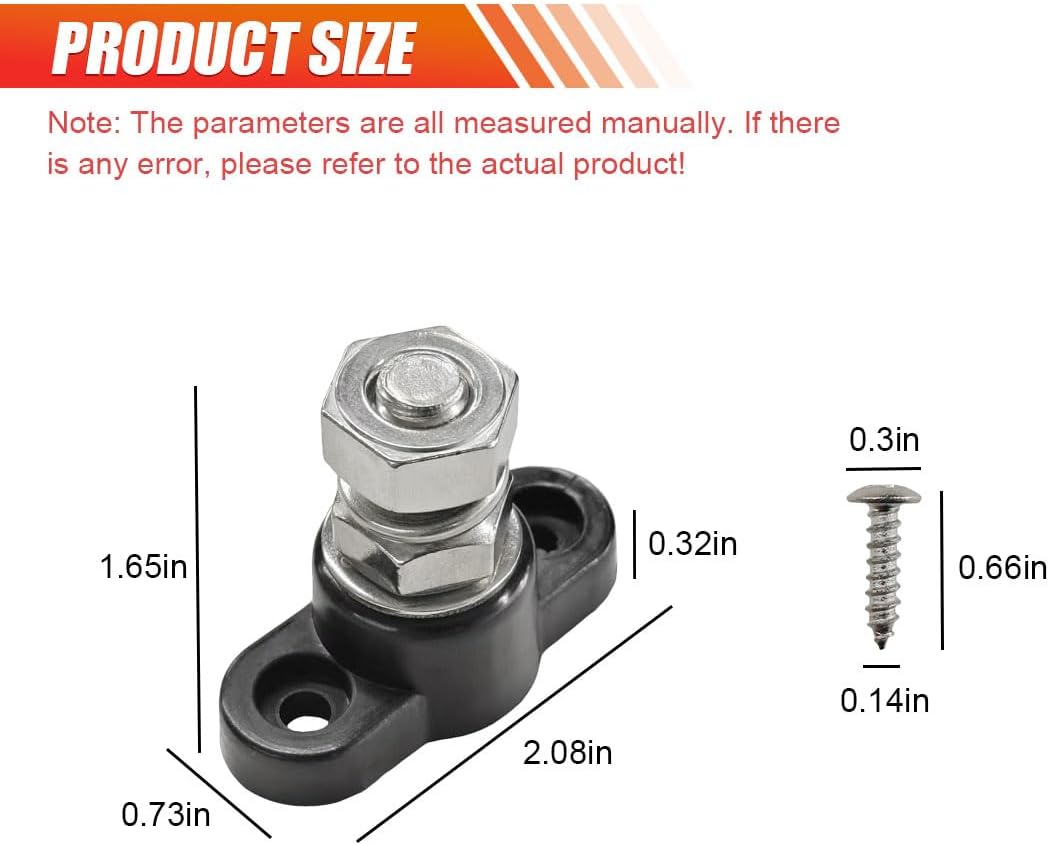3/8" Battery Power Junction Block Stud Stainless Steel Post, 12V DC M10 Single Stud with Insulated Base, Terminal Distribution B