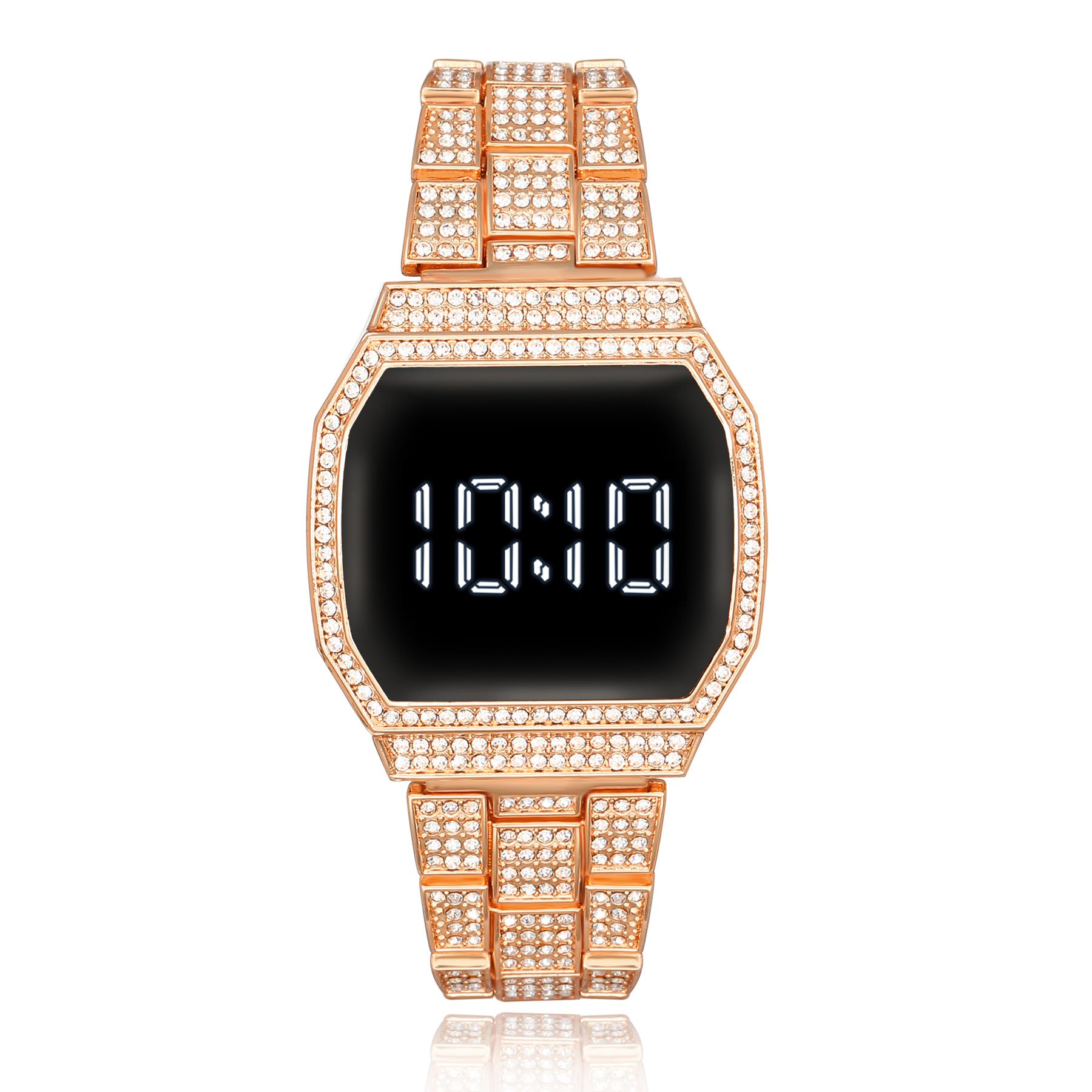 Women's Fashion Square Watch Luxury Rhinestone Touch LED Digital Electronic Wristwatch Girl's Gift Rose Gold