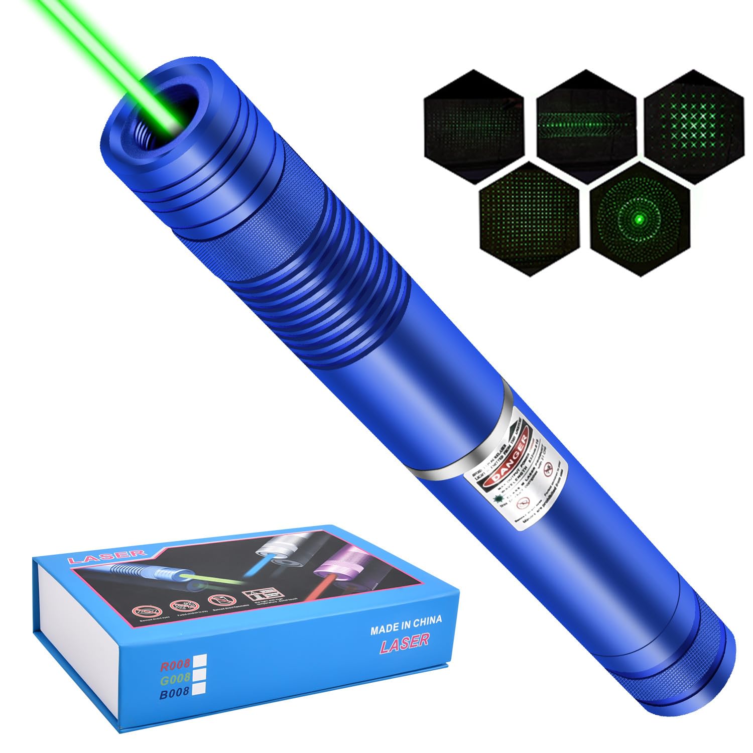 Long Range Green High Power Laser Pointer, Laser Pointer High Power with 5 Pcs Star Cap for Astronomy, Architecture, Outdoor Adv