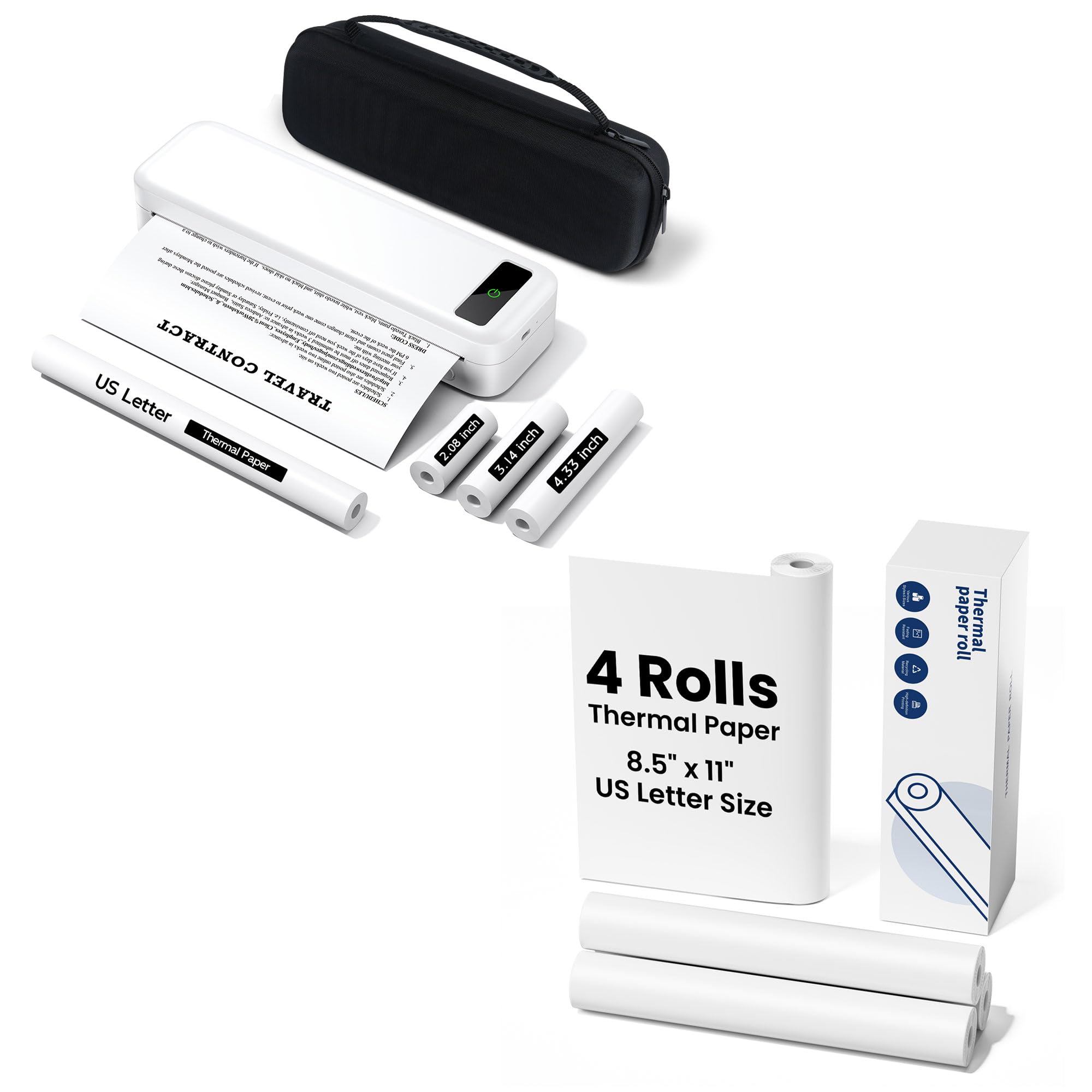 TATTMUSE Portable Thermal Printer Set with Case & 4 Rolls 8.5" x 11" US Letter Thermal Paper