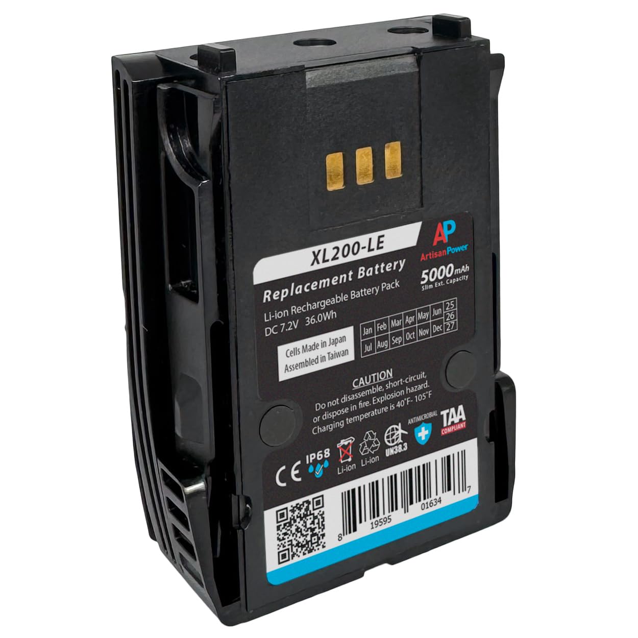 Artisan Power Replacement Battery for Harris XL 200P and XL 185P Radios. Slim Extended Capacity. 5000 mAh. Replaces XL-PA3V, XL-