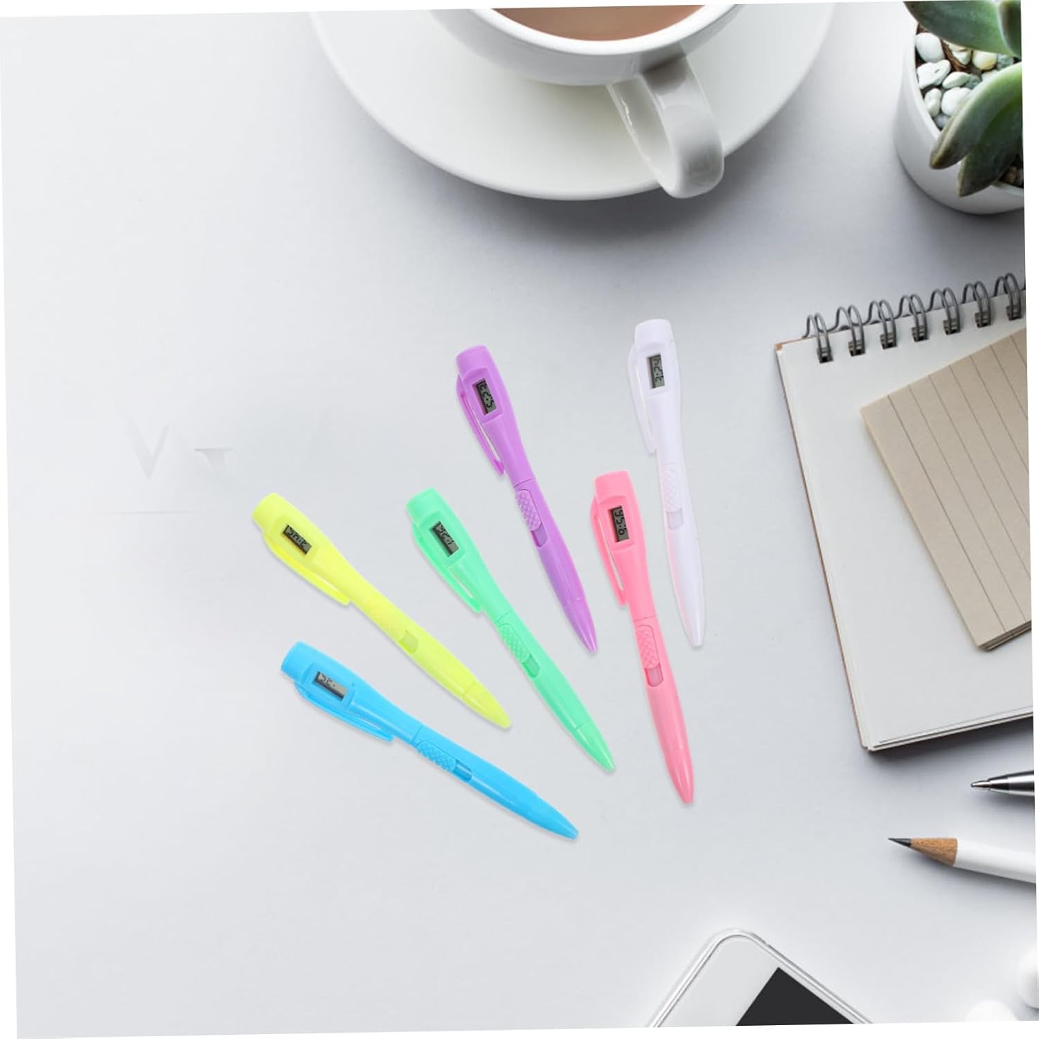 6pcs Ballpoint Pens Ink Pens Electronic Watch Note-taking and Timing for Exams Study Aids
