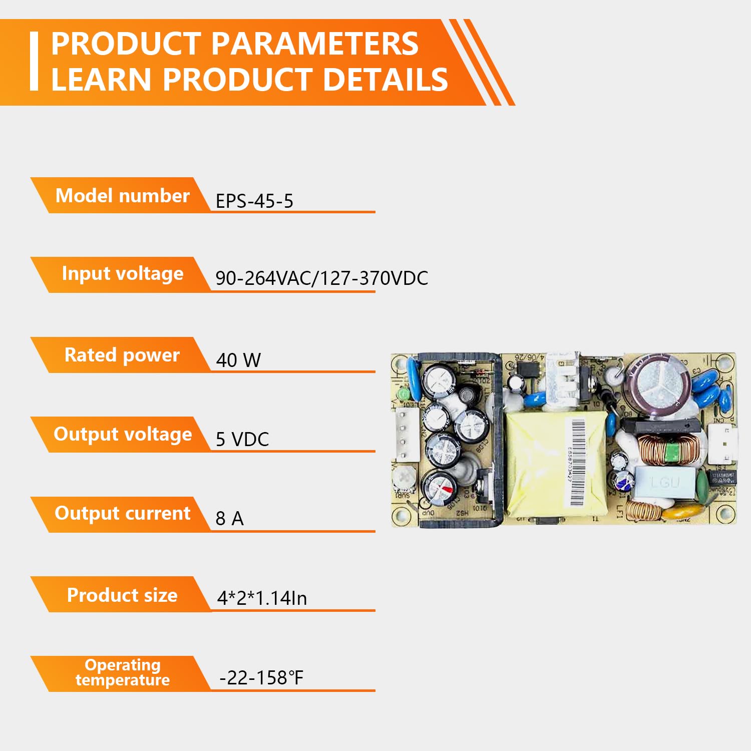 SBJ EPS-45-5 5V 8A AC-DC Power Supply with Universal Input, Compact Design for Industrial Automation and Home Electronics Applic