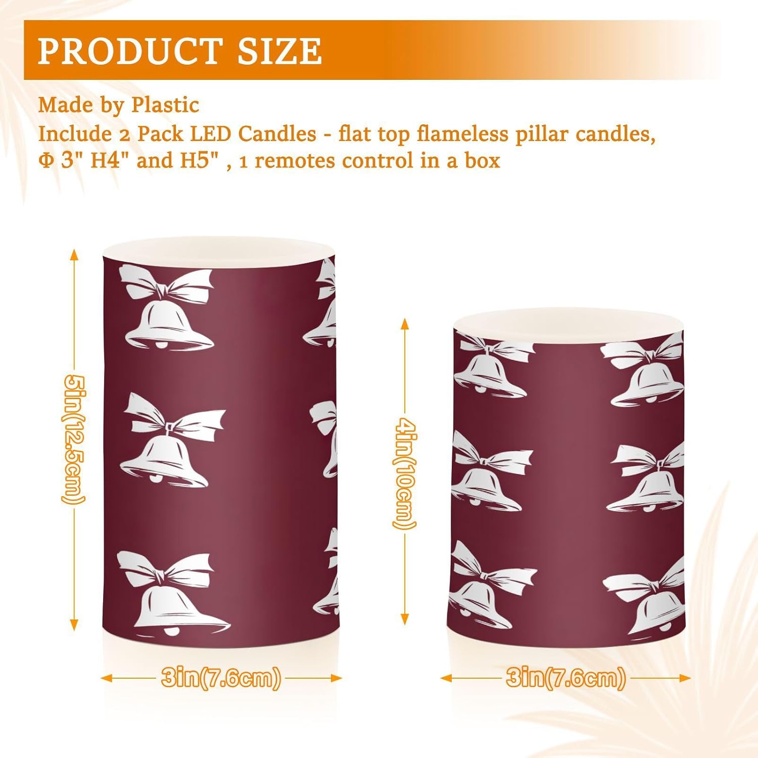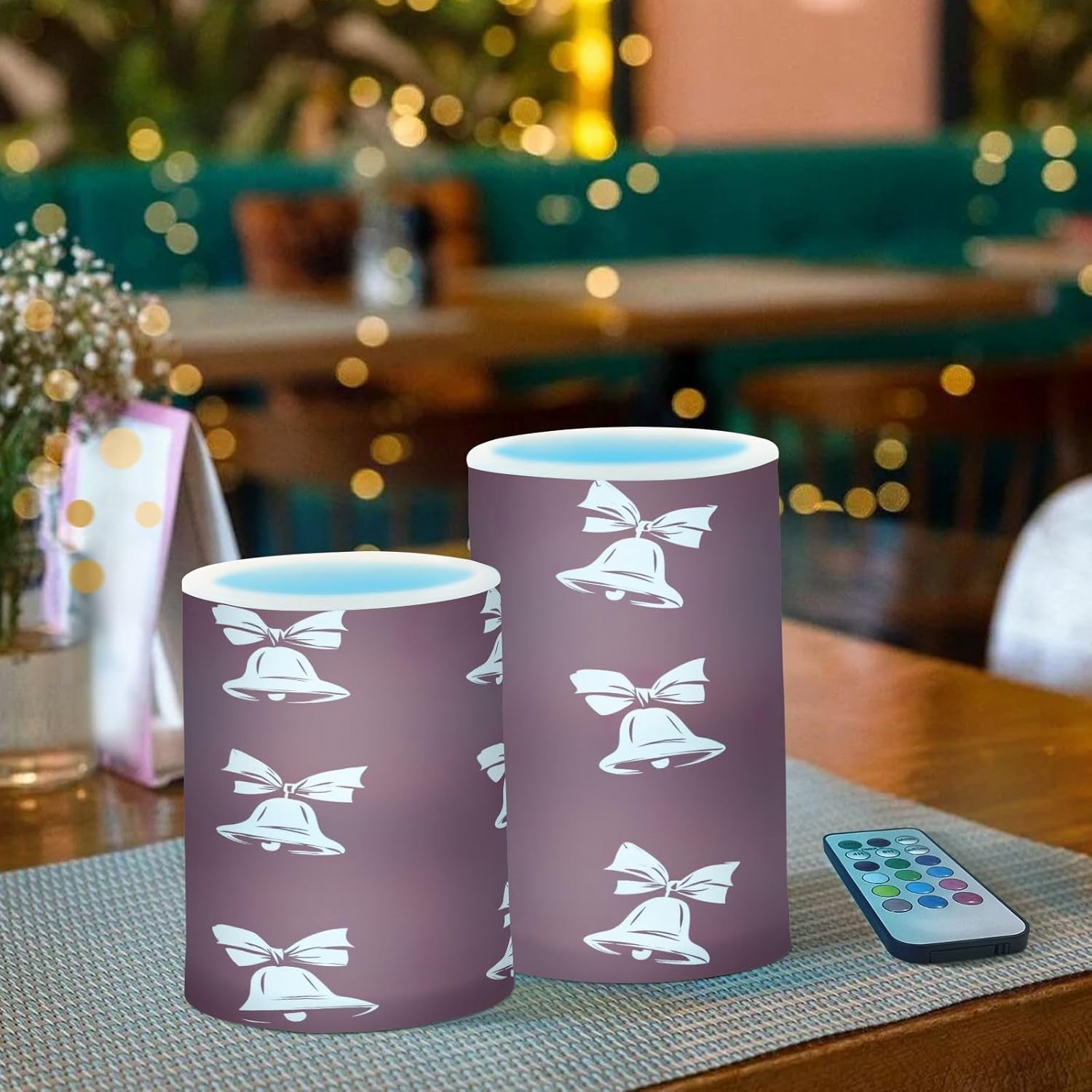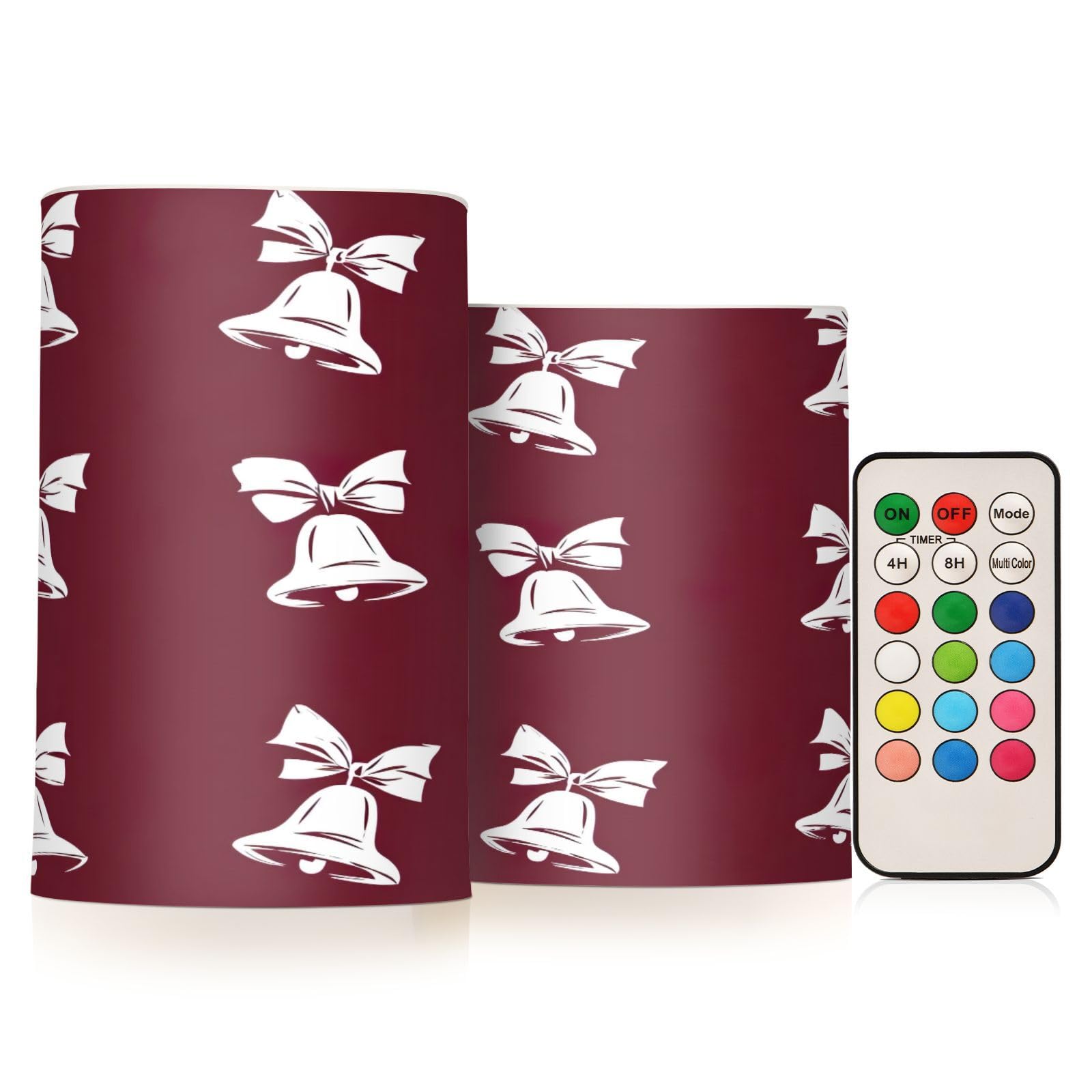 Christmas Bells with Bows Flameless Candles Color Changing Electronic Operated LED Pillar Candle with Remote and Timer for Decor