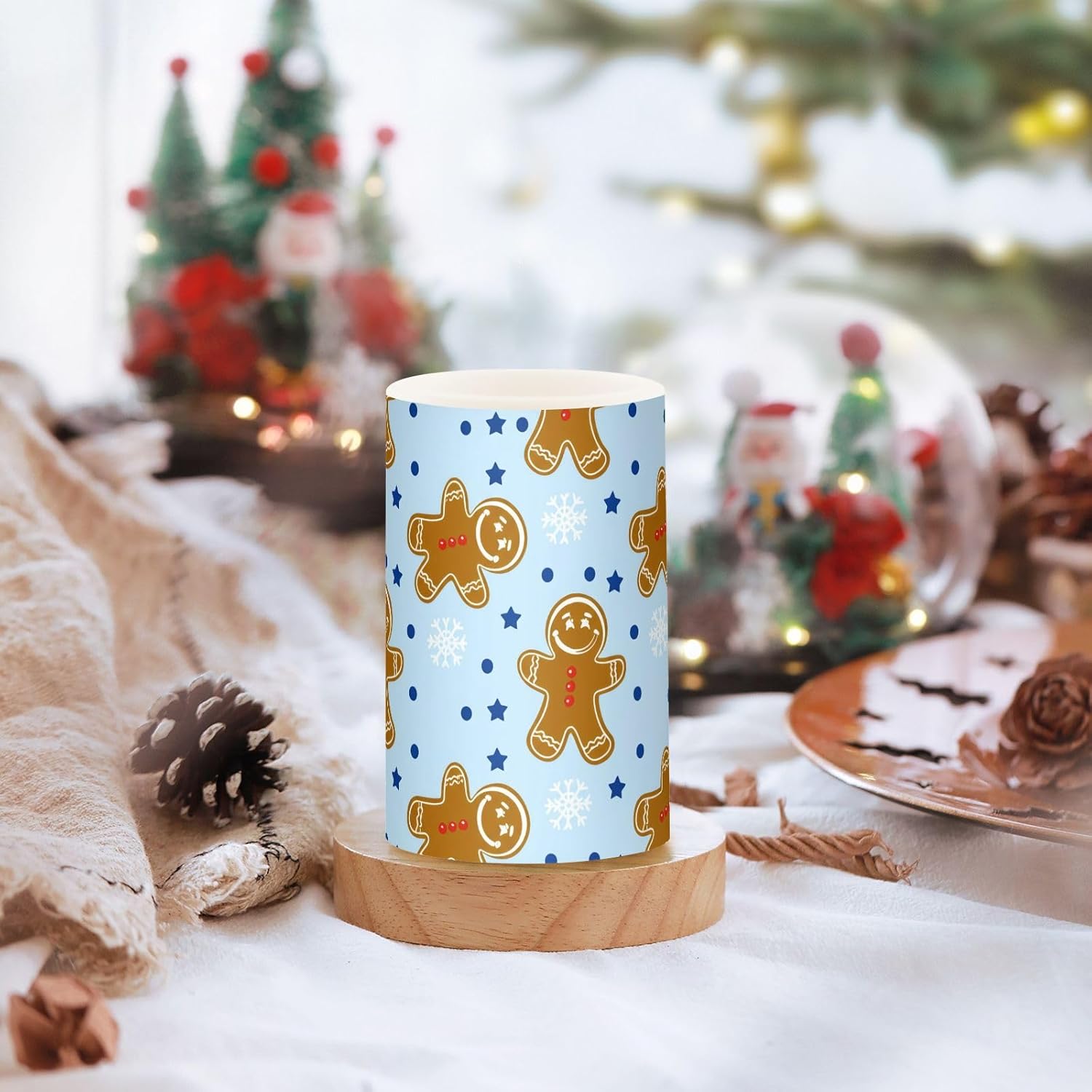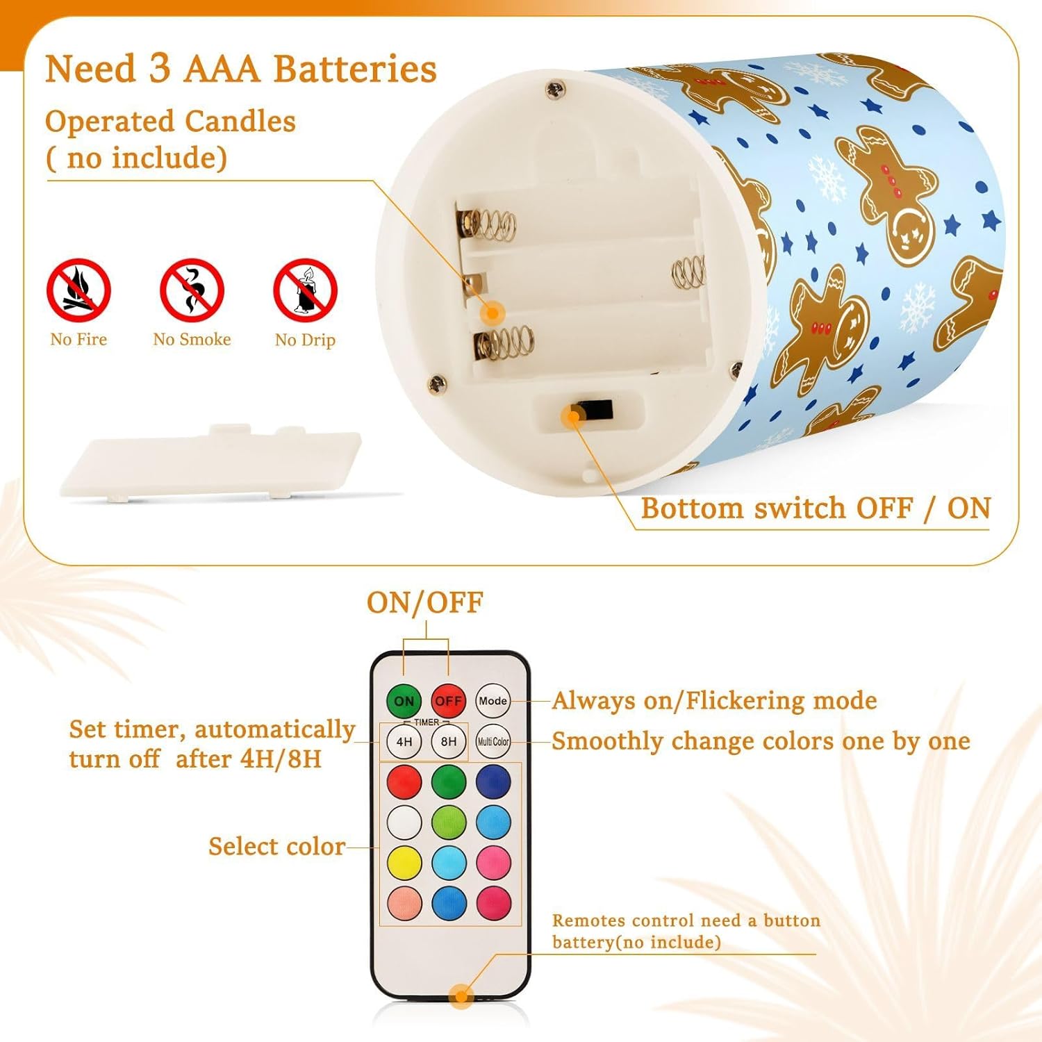Gingerbread Man Flameless Candles Color Changing Electronic Operated LED Pillar Candle with Remote and Timer for Decor Halloween