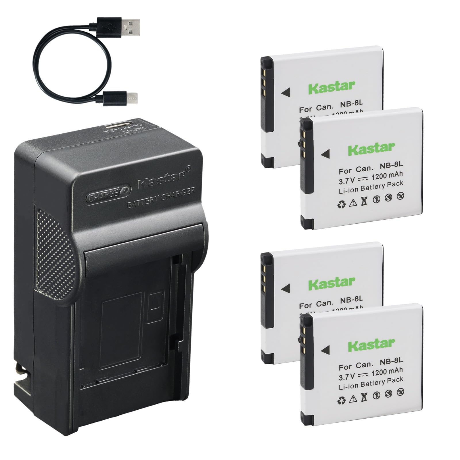 Kastar 4-Pack Battery and AC & USB-C Charger, Compatible with Canon NB-8L NB-8LH PowerShot A2200 A3000 is A3100 is A3150 is A320