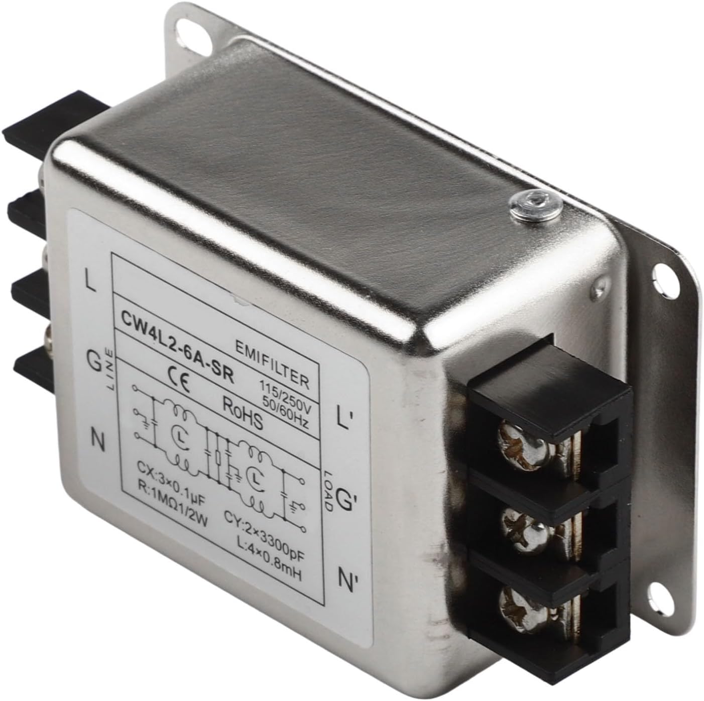 Power Supply Filter -Phase 2-Stage for Line Noise Suppression, Silver Alloy Shell for Filter with Versatile Terminal Connection,