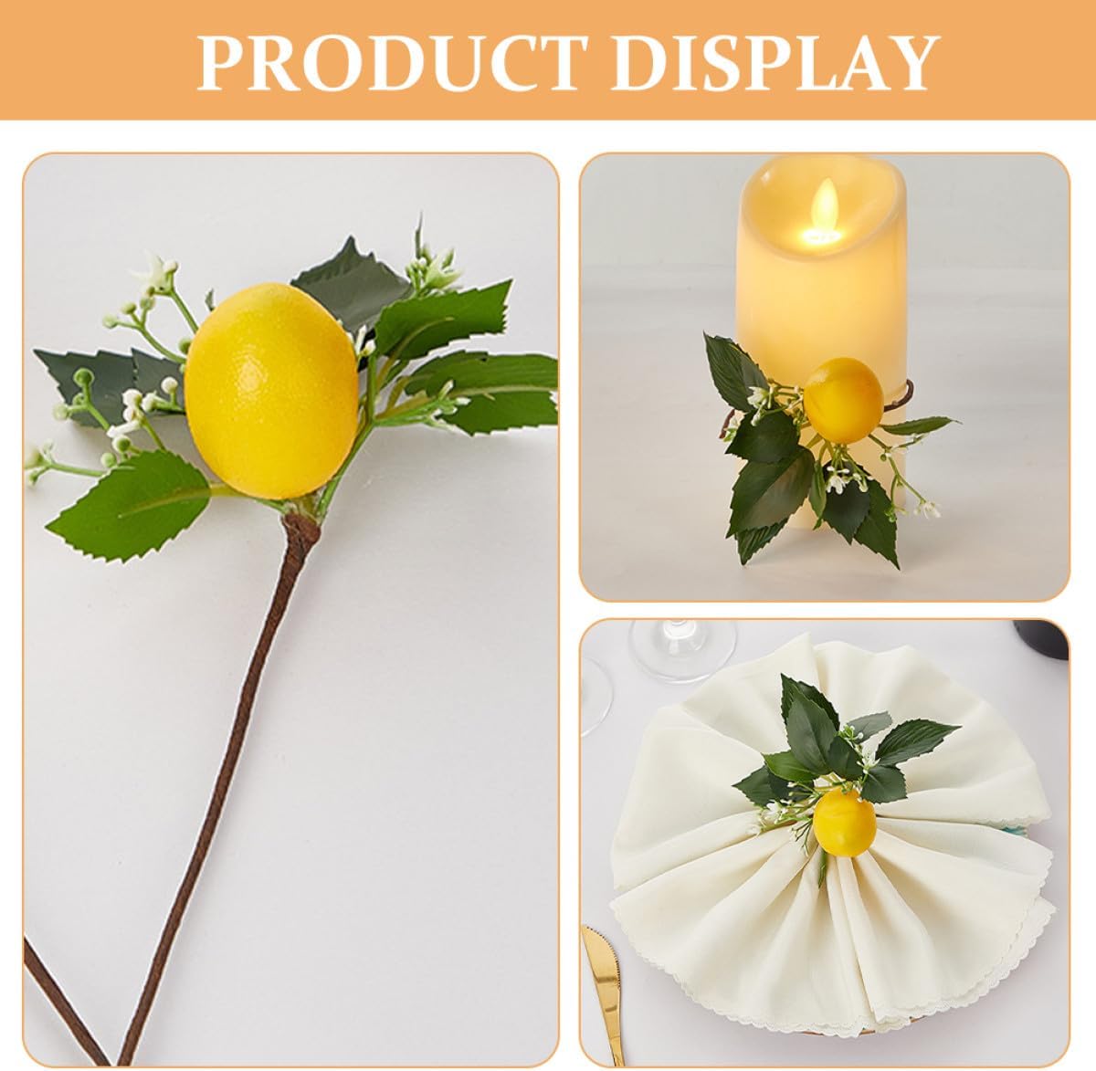 Milisten DIY Lemon Napkin Rings Faux Lemon Branches, 2pcs Artificial Fruit Stem Table Decoration for Home Kitchen Party Vase Fil