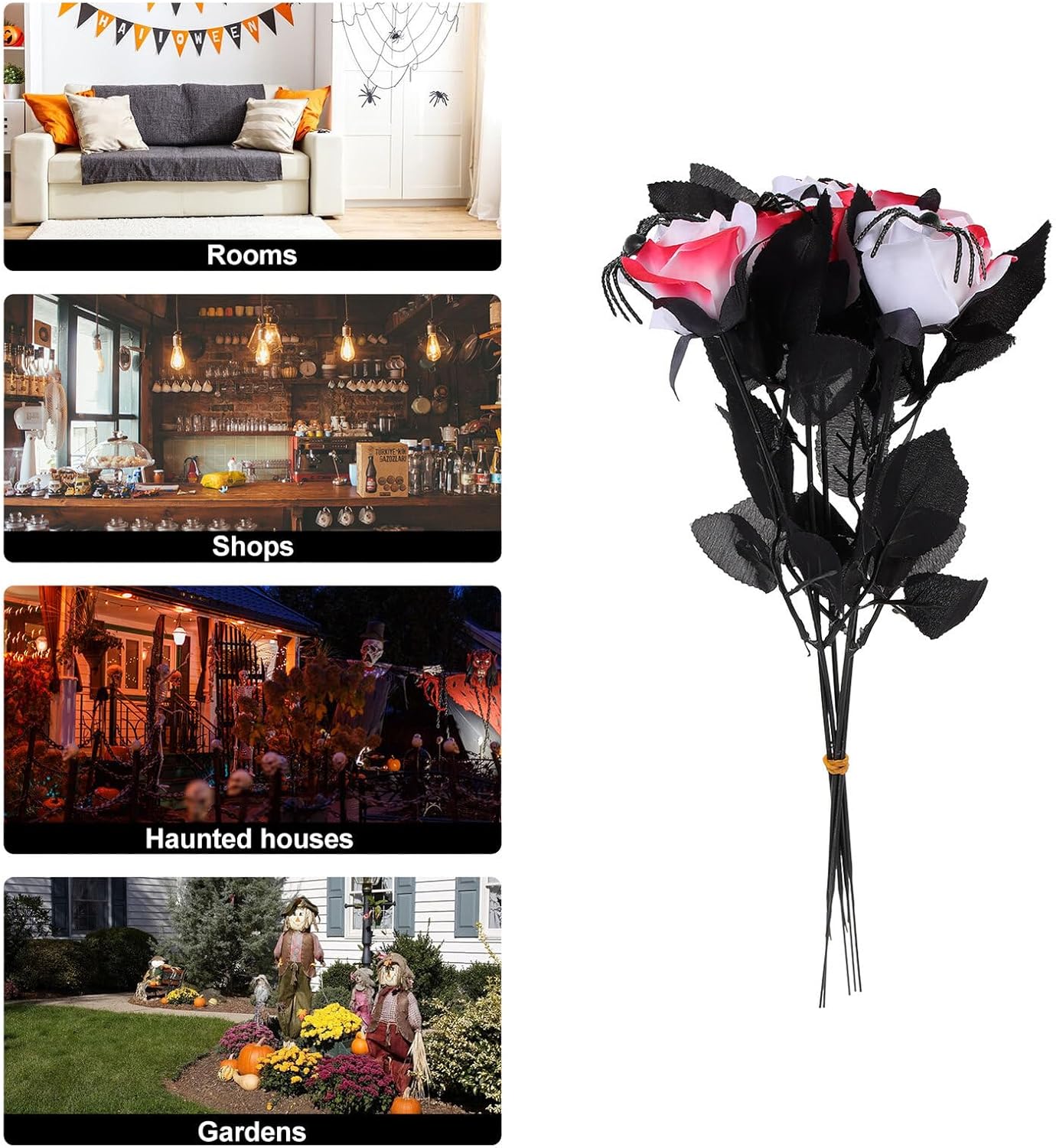 Milisten Halloween Artificial Rose with Spider Decoration 5pcs Set, Realistic Halloween Party Flower Arrangement Prop for Indoor