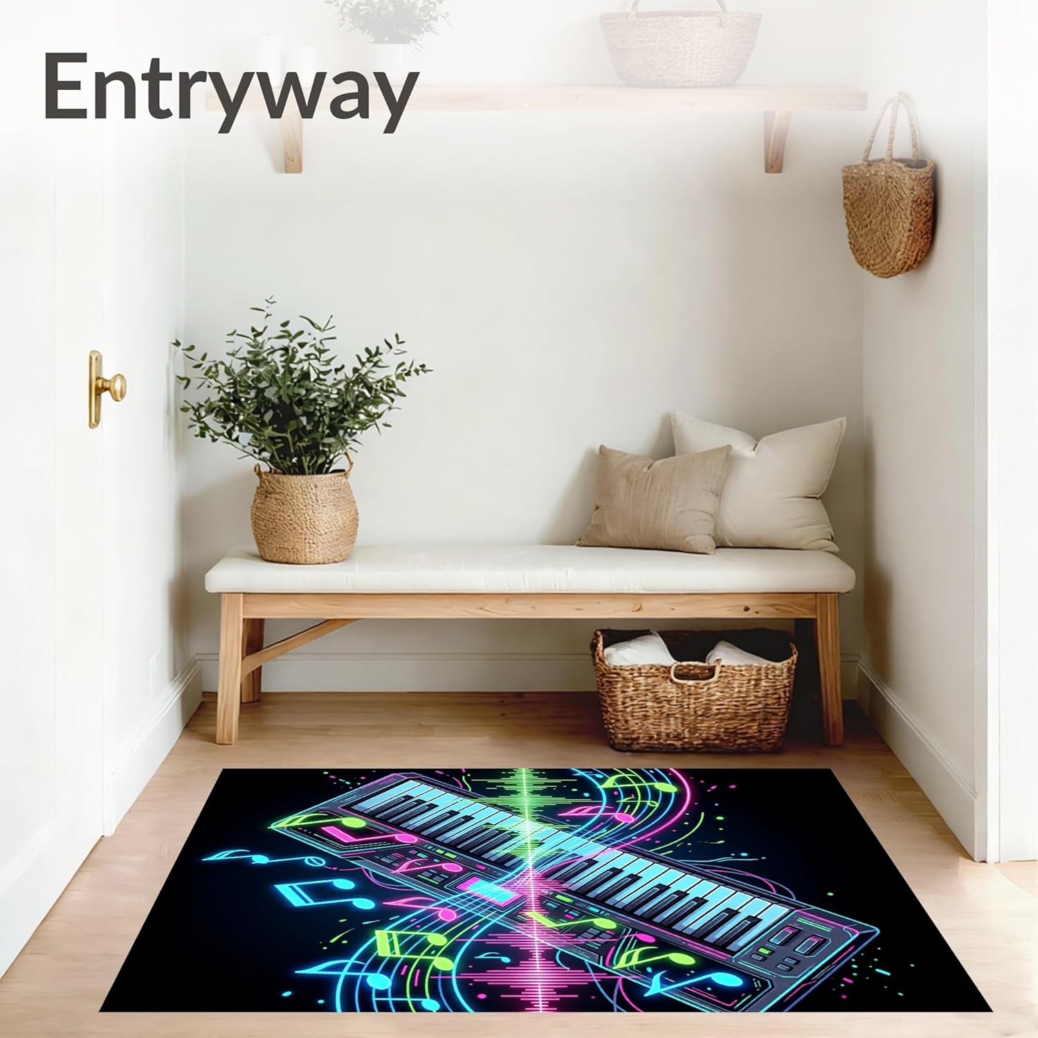 Low Pile Flatwoven Area Rug 2x3, Electronic Keyboard Groove with Notes and Interlocking Audio Wave, Machine Washable, Stain Resi
